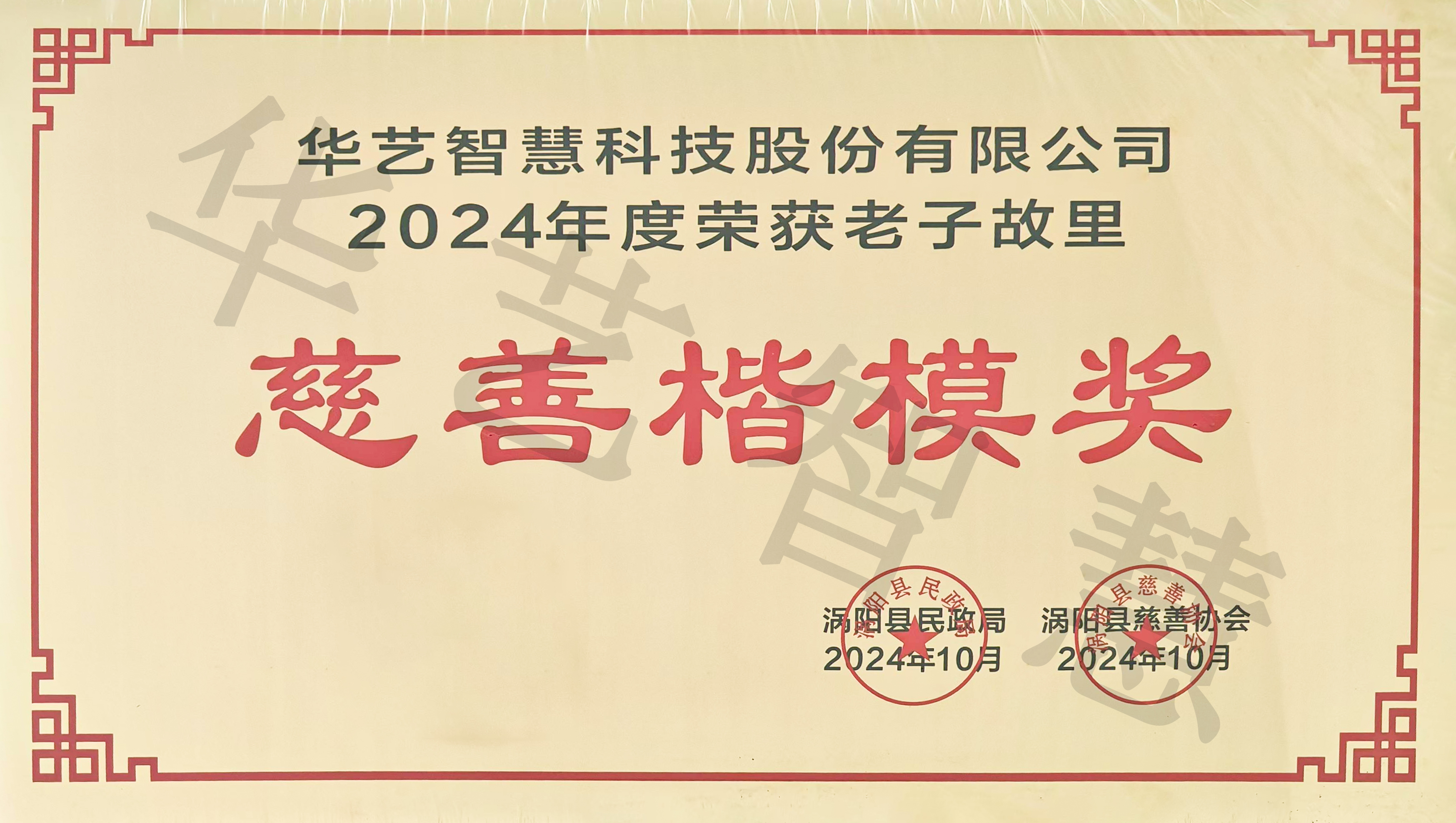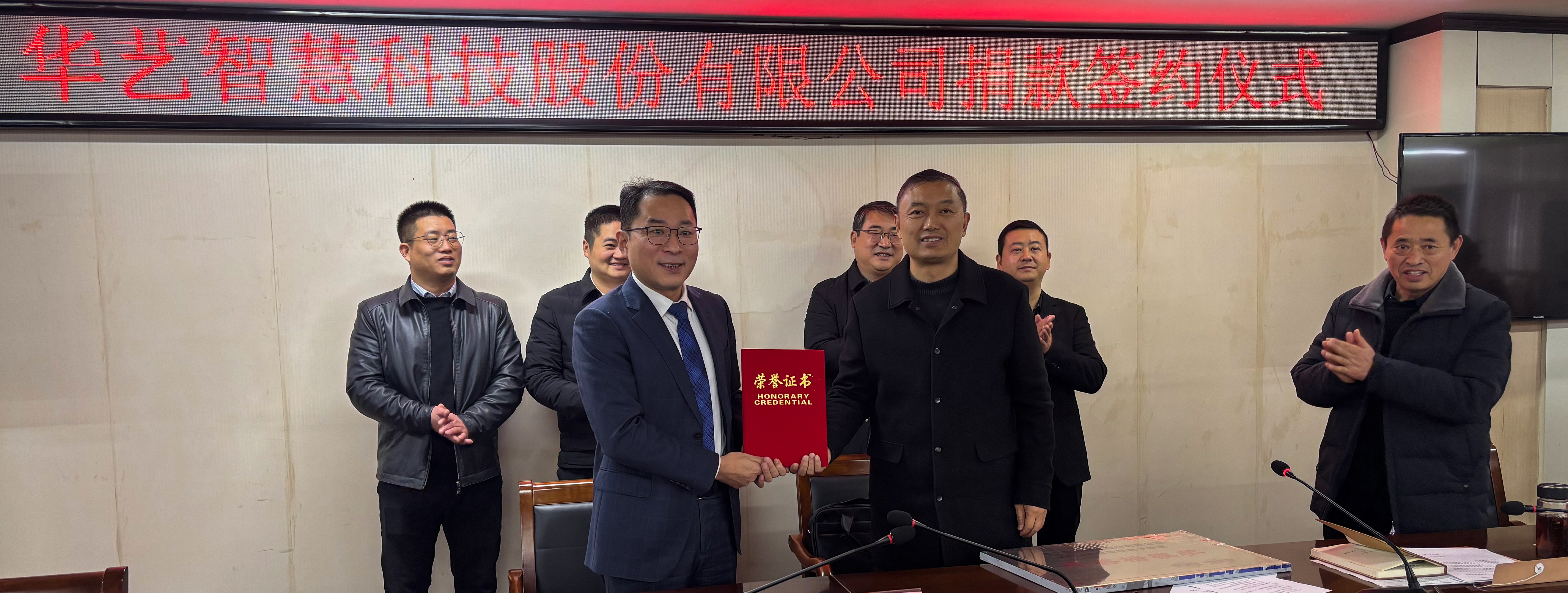 2024年12月4日,華藝智慧科技股份有限公司向渦陽縣慈善協(xié)會(huì)捐款簽約頒獎(jiǎng)儀式在縣人大六樓會(huì)議室隆重舉行??h人大常委會(huì)主任劉峰、縣民政局黨組書記、局長(zhǎng)翟保明、曹市鎮(zhèn)黨委書記張兵、華藝智慧科技股份有限公司總裁王在心、皖北區(qū)域總經(jīng)理金鵬飛、縣慈善協(xié)會(huì)秘書長(zhǎng)李洪全等有關(guān)人員參加了簽約、捐款、頒獎(jiǎng)儀式。華藝智慧榮獲老子故里“慈善楷模獎(jiǎng)”,華藝智慧總裁王在心榮獲老子故里“慈善大使”稱號(hào)。