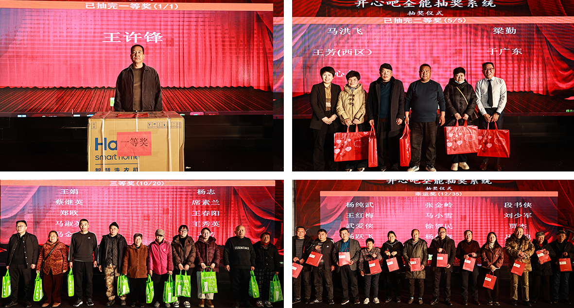 年會(huì)節(jié)目環(huán)節(jié),還融入了神秘驚喜的抽獎(jiǎng)環(huán)節(jié),將年會(huì)晚宴的熱鬧祥和的氣氛推向了巔峰。華藝智慧渦陽公司為大家精心準(zhǔn)備了豐富多樣的驚喜獎(jiǎng)品,讓大家在喜慶的氛圍中,共享歡樂時(shí)刻。