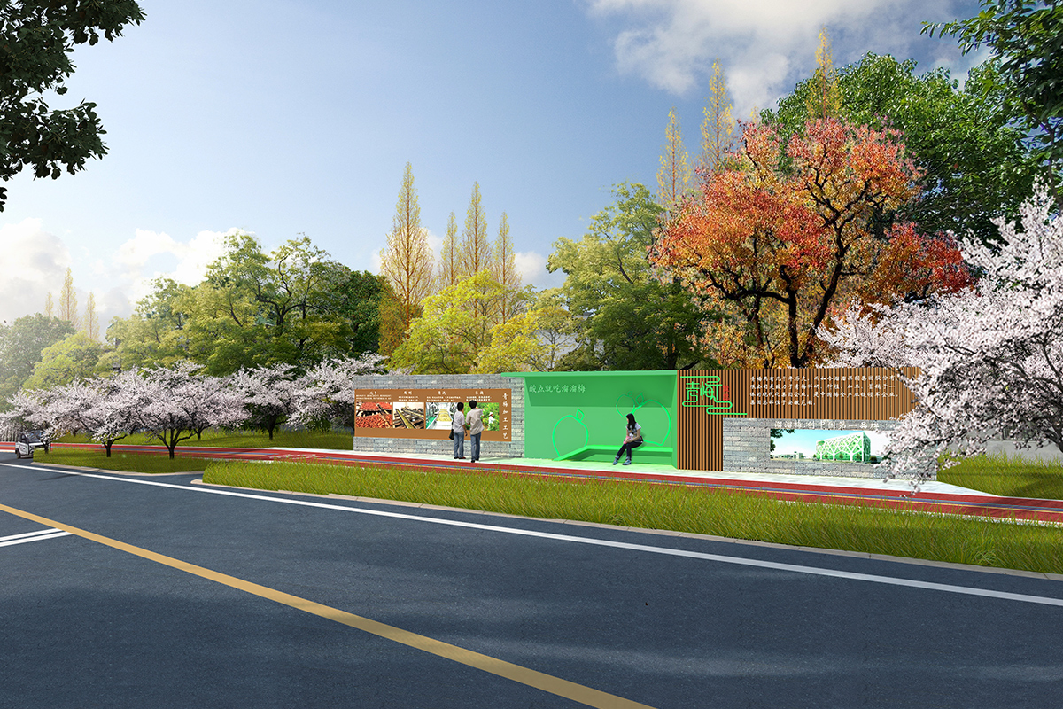 設(shè)計(jì)以健身綠道貫穿始終,并串聯(lián)多個(gè)景觀節(jié)點(diǎn)、文化節(jié)點(diǎn)和服務(wù)驛站。以繁昌青梅為主題元素,全段道路兩側(cè)采用青梅陣列種植,打造繁昌青梅大道特色景觀,綠道外側(cè)采用水杉和楓香間隔交錯(cuò)種植,地被采用自然多年生子播花草組合,體現(xiàn)鄉(xiāng)野自然植物景觀空間,下層植物空間主要以通透為主,滿足綠道游客觀賞繁昌田園風(fēng)光景色。