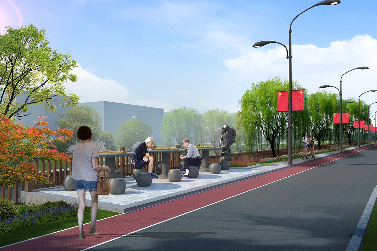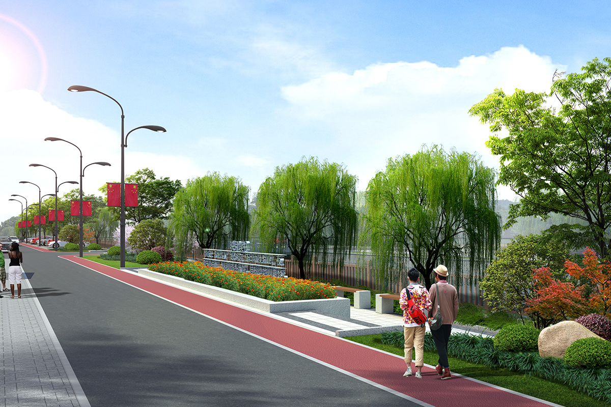 環(huán)城河景觀綠化設(shè)計(jì)內(nèi)容涵蓋河道瀝青道路、廣場(chǎng)、鋪裝、人行步道、休息平臺(tái)、綠化、人文等規(guī)劃設(shè)計(jì)。